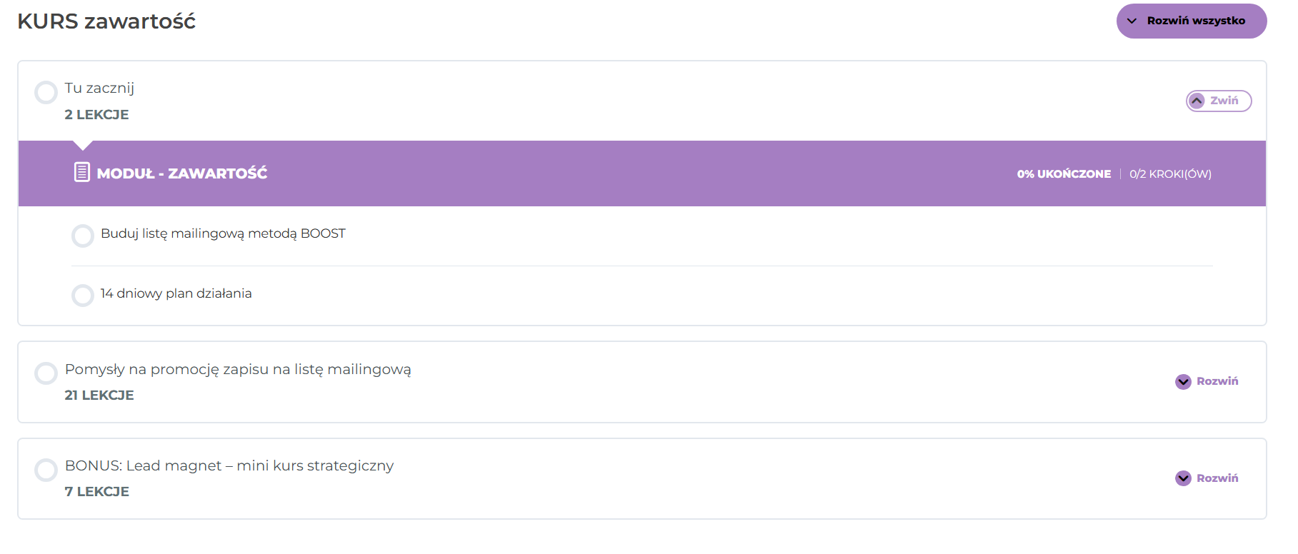 - BONUS: Mini kurs strategiczny o lead magnecie (7 treściwych lekcji)