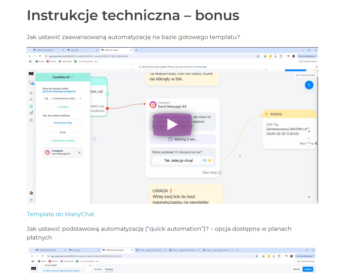 🎯 Tutorial wideo: jak krok po kroku ustawić automatyzację wiadomości DM na Instagramie w ManyChat – dostajesz gotowy wzór do skopiowania jednym kliknięciem.