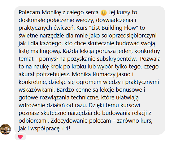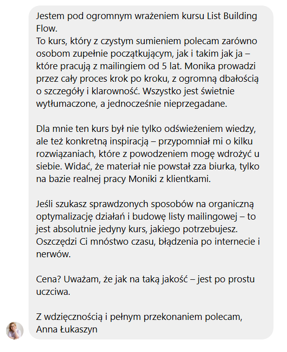 - Twoja lista będzie stale się powiększać, bo nauczysz się strategii, które działają długoterminowo – bez sponsorowanych postów